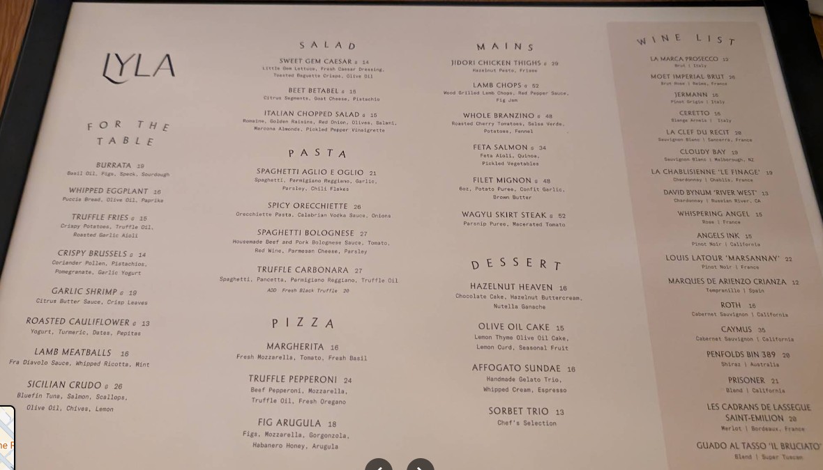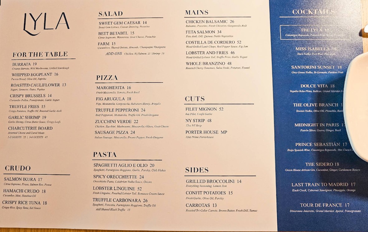 I had an amazing dining experience at Lyla while visiting from Chicago! The food was absolutely delicious — fresh, flavorful, and beautifully presented. But what really made the evening special was our server, Gerson. He was incredibly attentive, friendly, and made great recommendations that took our meal to the next level. You can tell he truly cares about providing an exceptional experience. Highly recommend Lyla for anyone looking for authentic Italian food and outstanding service — ask for Gerson when you go!